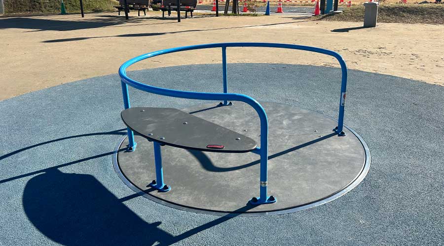 車椅子のまま楽しめる回転遊具は非常に人気ですが、実際に私が現地で確認したところ、驚くほどの速さで回転していました。休日には10人以上の子どもたちが一斉に乗ることもあり、「ポールに頭をぶつけた」という事故に近い声も届いています。